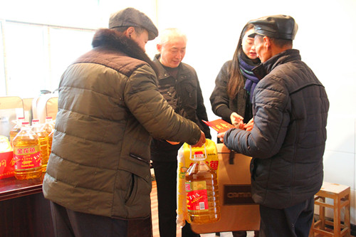 凜冽的寒風阻擋不住送關懷的腳步,深冬的嚴寒冷卻不了送溫暖的愛心。在2016年春節即將來臨之際,為使對口扶貧村的貧困群眾過上一個快樂祥和的新年,四川天順集團有限責任公司組成慰問組,滿懷著對貧困戶的深情厚誼,于2016年1月19日上午,深入達川區馬家鎮肖家村對7戶特困戶進行了春節慰問,送去了價值2400元的大米、食用油、棉被和2100元慰問金,同時也送去了黨和政府對貧困人員的關懷。