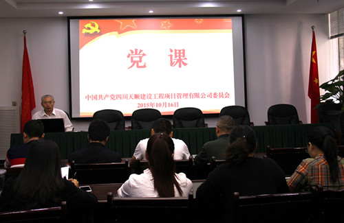 2015年10月16日下午,中國(guó)共產(chǎn)黨四川天順建設(shè)工程項(xiàng)目管理有限公司委員會(huì)組織上黨課,50多名黨員、入黨積極分子上了參加了學(xué)習(xí)。