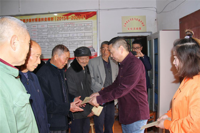 此次活動(dòng),得到了馬家鎮(zhèn)黨委政府的大力支持和高度重視,鎮(zhèn)長(zhǎng)陳卉彤、副鎮(zhèn)長(zhǎng)趙珊在百忙之中抽出寶貴時(shí)間參加了活動(dòng)。在沙壩村黨員活動(dòng)室,李國(guó)鋒同志代表集團(tuán)公司黨委,慰問(wèn)了該村5位貧困黨員,并發(fā)放了慰問(wèn)金;向沙壩村黨支部贈(zèng)送了黨章、黨微。并向大家介紹了集團(tuán)公司近年來(lái)以黨建“金鑰匙”開(kāi)啟企業(yè)創(chuàng)新發(fā)展之門(mén)的特色與做法。希望集團(tuán)公司黨組織和沙壩村支部,加強(qiáng)交流學(xué)習(xí),形成“互聯(lián)互助、優(yōu)勢(shì)互補(bǔ)、共同提高”的基層黨建新格局。陳鎮(zhèn)長(zhǎng)對(duì)集團(tuán)公司給予馬家鎮(zhèn)肖家村、沙壩村的大力支持和幫扶表示感謝,希望雙方發(fā)揮優(yōu)勢(shì)、搭建平臺(tái)、建立機(jī)制、形成常態(tài),希望中泰天順集團(tuán)公司繼續(xù)給予大力支持,與村民一道,把沙壩村建設(shè)得更加美好。